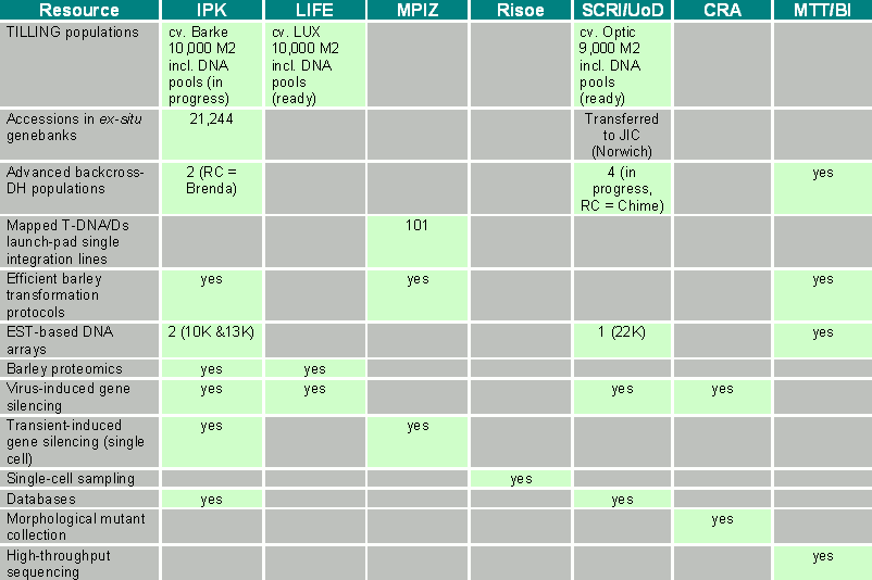 The barley resources listed above are the basis for a number of